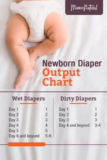 In addition to working on latch and observing satiety following feeds, you will watch diaper output. The first day of life we expect baby to have 1 dirty and 1 wet diaper. Day 2, 2 dirty and 2 wet and so on through Day of life 4. Usually by this time mom’s milk has begun to increase so baby will be having several wets and several dirty diapers each day.
