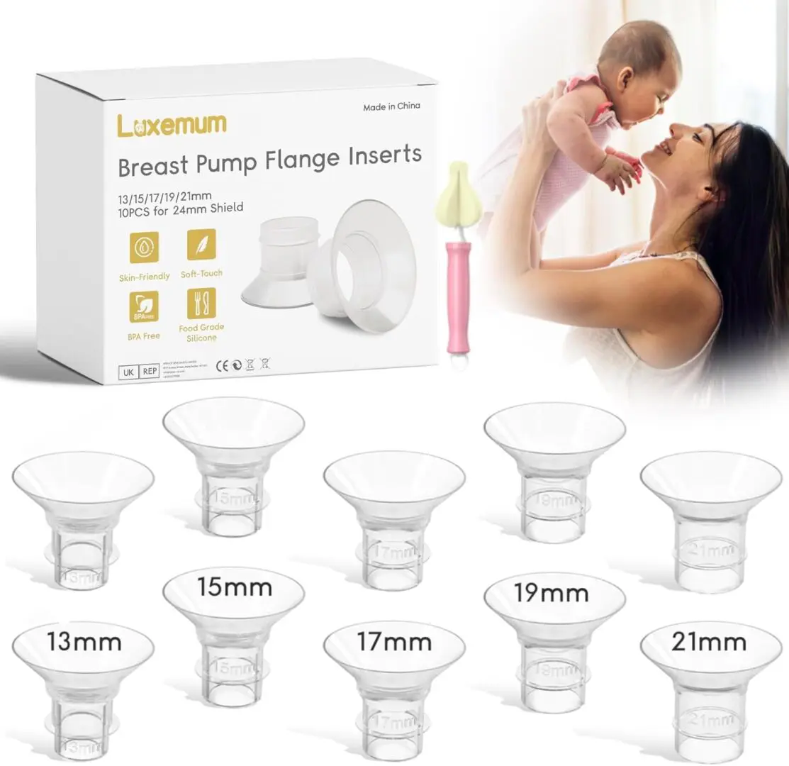 10PCS Silicone Flange Inserts 13/15/17/19/21mm for 24mm Flange/Shield of Most Pumps Compatible with Momcozy, KISSBOBO, Lansinoh, Elvie, Willow go, Spectra, Medela Freestyle Flex, Pump Shields